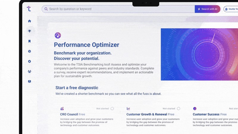 The TSIA Portal provides access to TSIA research, AI-powered guidance, benchmarking tools, member resources, and team-based features that help you move from insight to action.